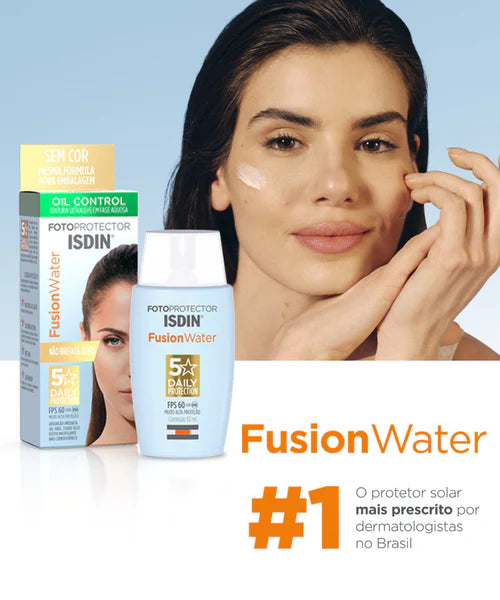 Sol lá fora, confiança na pele: ISDIN Fusion Water, o protetor solar mais prescrito do Brasil, agora com textura ultraleve, toque seco e proteção diária que você sente — e sua pele agradece.